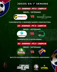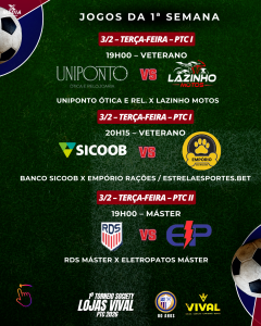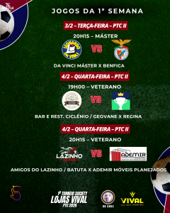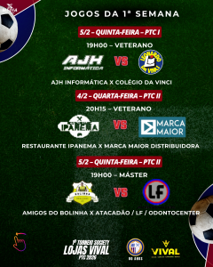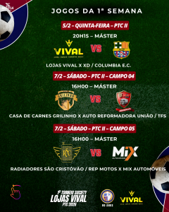 TORNEIO SOCIETY LOJAS VIVAL – PTC 2026 – 1ª SEMANA